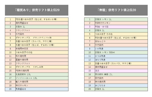 図2 「糖質あり」「無糖」の併買リフト値上位20 ※酒類除く