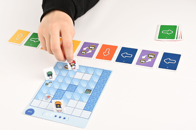 PCやタブレットを使わずとも「いつでも・どこでも」プログラミング学習ができる、アンプラグド・プログラミング教育ツールとして活用できるのが特徴です。