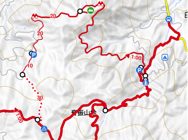 *ルートの通行量はあくまで「どれくらいの登山者がそこを通過しているか」の客観的データであり、太いルートがすべて安全というわけではありません。例えば、多くの登山者が歩いていても「前日の雨で登山道が崩れている」「岩場で崖の近くしか歩ける場所がない」など、危険なルートはありますので、必ずご自身やグループの登山経験を踏まえて事前のルート確認をした上で登山計画をたてるようにしましょう。