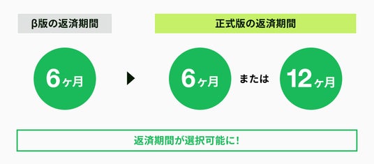 これまでは返済期間は6ヶ月のみでしたが、6ヶ月または12ヶ月の2種類から選択できるようになりました。これにより、お客様のキャッシュフローや資金計画に合わせた返済スケジュールを柔軟に設定いただけます。