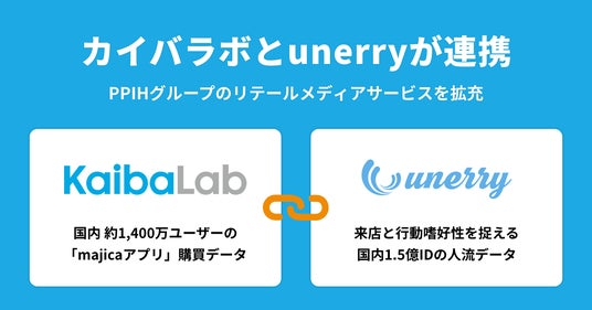 リアル行動データプラットフォーム「Beacon Bank」を運営する株式会社unerry(本社:東京都港区、代表取締役社長CEO:内山英俊、以下、unerry)と、株式会社パン・パシフィック・インターナショナルホールディングス(以下、PPIH)グループでデジタル領域を担う株式会社カイバラボ(本社:東京都目黒区、代表取締役社長:森谷 健史、以下、カイバラボ)は、PPIHグループのリテールメディアサービス拡充に向けた連携を開始いたしました。
