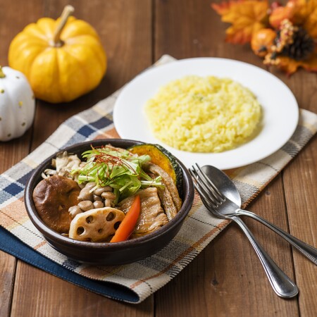 お店で仕込んだ豚角煮と、3種のきのこを使用したスープカレーです。秋の味覚をお楽しみください。