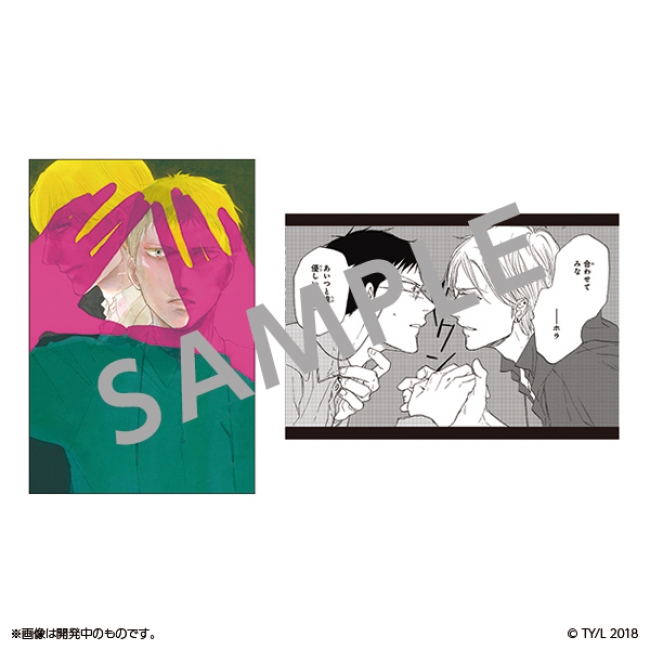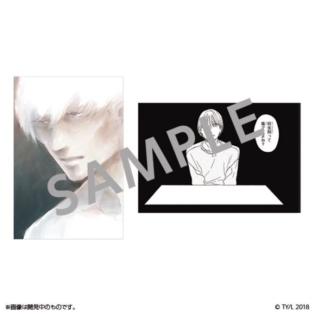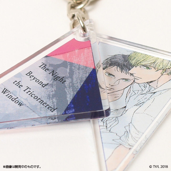 三角形のアクリルキーホルダーです。2枚重ねになっており、英字タイトルをプリントした1枚目をスライドさせることで、三角と冷川の姿がお目見え。いつでもどこでも作品の世界観を持ち歩ける、ファンにはうれしいアイテムです。