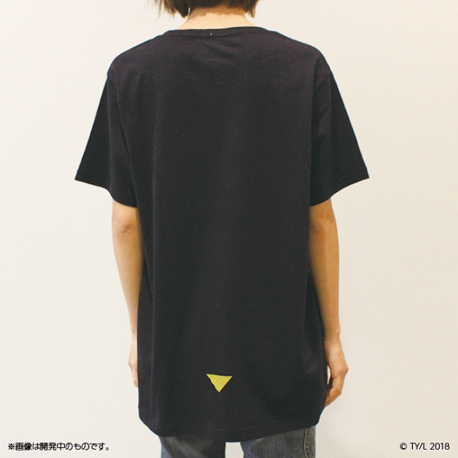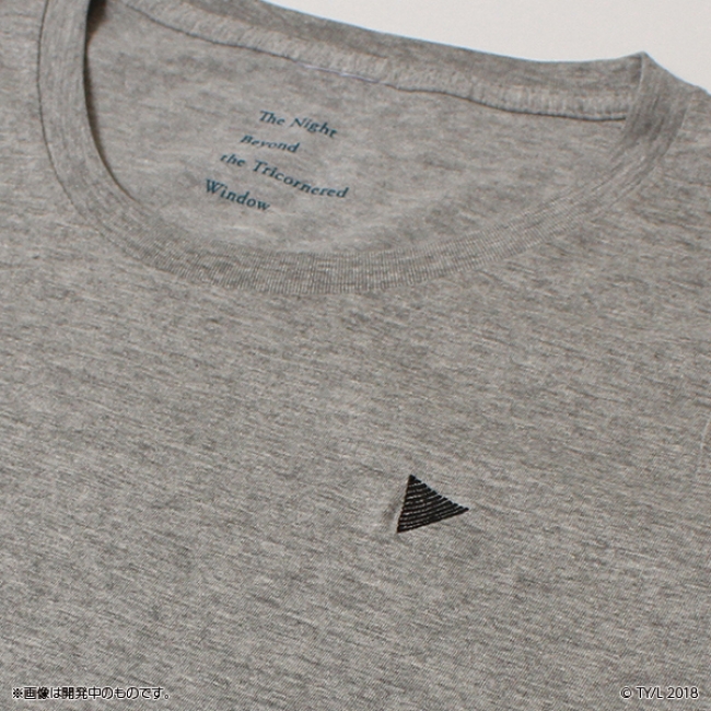 三角(みかど)が冷川にかけられた“束縛”のマーキングをデザインした、シンプルなTシャツです。左胸には三角形の刺繍を施し、三角(みかど)の腰にある三角形のアザを模した柄を、背面にプリント。目をひく配色で仕上げました。普段使いしやすいグレーとネイビーの2種類を用意しています。