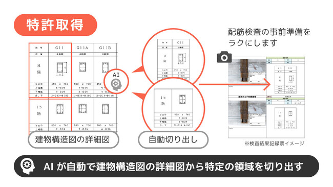基本特許技術「詳細図自動切り出しAI」により、独占的に「AIで建物構造図から自動で各詳細図を切り出すことができるAI技術」が提供できるようになるため、利便性が向上します。