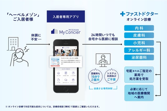 旭化成不動産レジデンス株式会社(本社:東京都千代田区、代表取締役社長:高橋 謙治、以下「旭化成不動産レジデンス」)は、ファストドクター株式会社(本社:東京都渋谷区、代表取締役:菊池 亮〈医師〉・水野 敬志)と連携し、同社が管理する、「ヘーベルメゾン」をはじめとする賃貸住宅の入居者専用アプリ「マイコンシェル」に、24時間365日対応のオンライン診療サービスを2025年7月1日より導入開始したことをお知らせします。