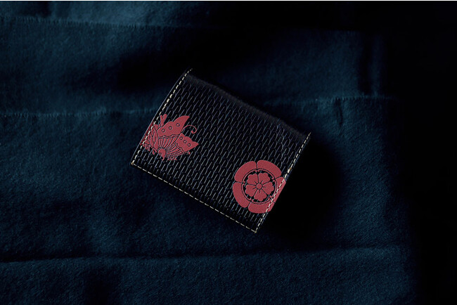 お財布の背面には織田信長が用いた代表的な家紋「織田木瓜」と「揚羽蝶紋」をデザイン。「織田木瓜」は木瓜(ぼけ)の花がデザインの由来で卵が並んだ鳥の巣にも見えることから繁栄の意味で縁起がよい紋とされています。