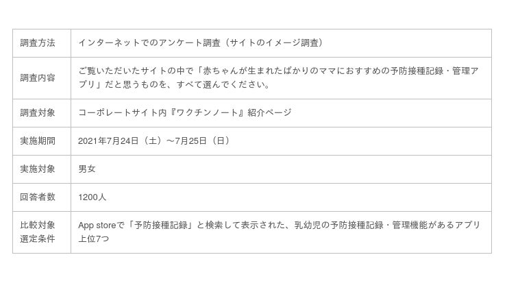 「家族の健康を支え笑顔をふやす」をビジョンとし、家族と向き合う全ての人のアシスタントとして心身ともに健康な生活を支援する事業会社である株式会社カラダノート(東京都港区/代表:佐藤竜也/以下当社)が提供する予防接種記録・管理アプリ『ワクチンノート』は、日本トレンドリサーチ(運営会社:株式会社NEXER)で行ったアンケート調査により「赤ちゃんが生まれたばかりのママ友におすすめの予防接種記録・管理アプリ No.1」を獲得しました。