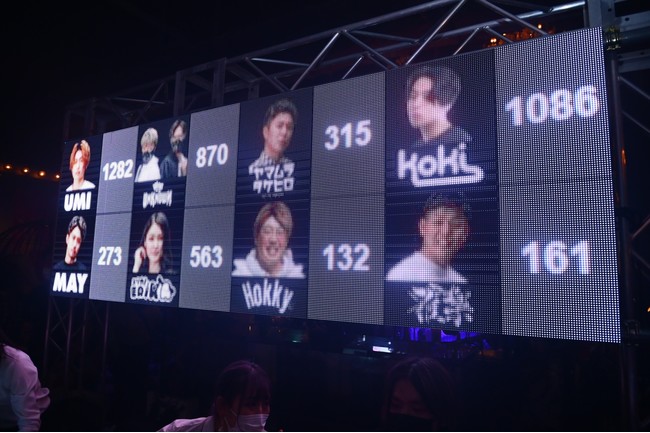 予選上位7組と敗者復活枠の合計8組が、会場CLUB PICCADILLY UMEDA OSAKAで開催された最終決戦に進出しました。次世代スターの誕生に立ち会うべく多くのお客様が集まり、配信アプリJP NIGHTでの累計視聴者数は2000人を超えました。