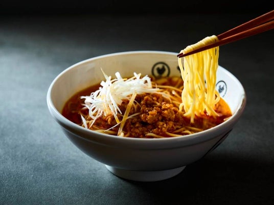 ゴマベースの一般的な担々麺とは異なり、醤油ベースのスープが特徴です。たっぷりなラー油の辛みが食欲をそそり、スープに深みを与えます。甘みのある炒めた玉ねぎが、ラー油の辛さを中和し、コクを出します。麺は太麺で、スープによく絡み、豚ひき肉がスープに旨みをプラスします。