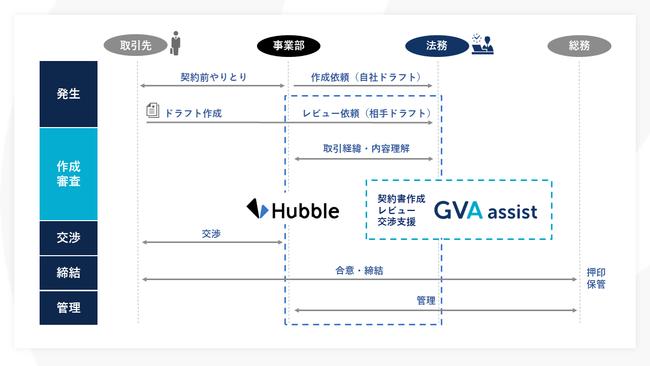GVA TECHとHubbleでは、テレワーク中でも円滑に契約書審査業務ができるように法務部の皆さまを支援して参ります。
