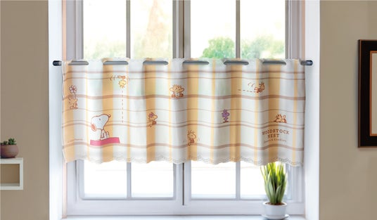 棚の目隠しやお部屋のアクセントにぴったりな横長のカーテン。