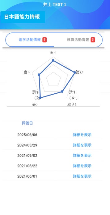 日本語能力情報(学生用スマホアプリ)学習者は、WSDBスマホアプリを利用し、日本能力情報を確認できます。