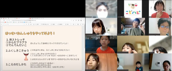 シンガーソングライターとしても活躍しているプロのボイストレーナーnanan先生が、オンライン上で子ども達に歌を歌うときのポイントや声の出し方などの指導をいたしました。