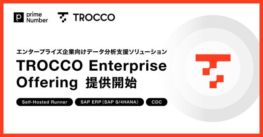 primeNumberでは、データ活用を必要とするお客さまに向けた機能群をデータ分析支援ソリューション「TROCCO Enterprise Offering」として提供、その第1弾として、Self-Hosted RunnerやSAP連携、CDCを「ERPデータ活用パッケージ」として提供します。これにより、お客様はデータ統合基盤の構築・運用をより自律的にかつ効率的に進められるようになります。