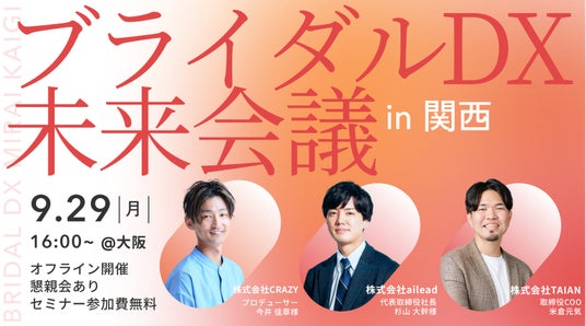 商談・面談解析クラウド「ailead(エーアイリード)」を提供する株式会社ailead(本社:東京都港区、代表取締役:杉山大幹)は、2025年9月29日(月)に開催される株式会社TAIAN主催の「ブライダルDX未来会議」において、当社代表取締役社長・杉山大幹が登壇することをお知らせします。