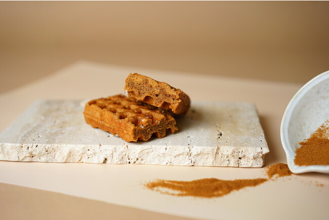 大粒ザラメが入った京ワッフルの生地には、文久元年創業、京都の老舗抹茶店「山政 小山園」の抹茶粉を贅沢に練り込みました。断面まで鮮やかな抹茶色をした濃厚のフレーバー。