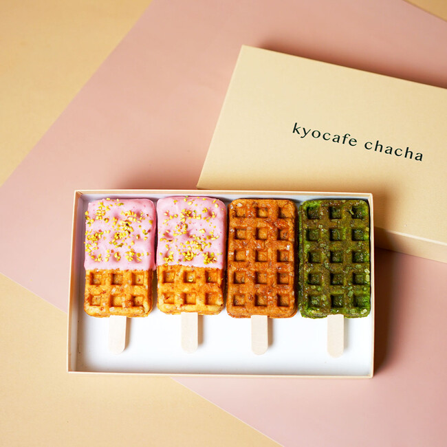 ワンハンドスイーツとして注目されている京ワッフルを展開するkyocafe chachaでは、2023年1月の期間中、「宇治抹茶×ほうじ茶BOX」と「よくばりいちごBOX」を各50箱限定で展開。