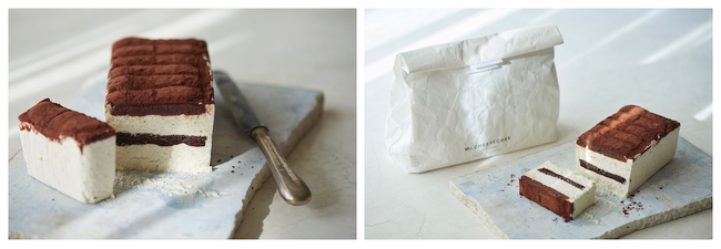 お酒も小麦粉も使用していない、儚い口溶けのティラミス。おすすめの食べ方は、冷凍。甘さよりもカカオの味わいやコーヒーの香ばしさが引き立ちます。溶けやすい商品のため、冷凍のままカットし、温度によって変化する味わいと香りをお楽しみください。
