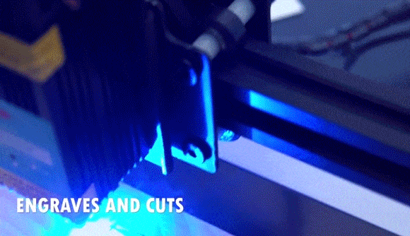 レーザーモジュールに交換すると、2.5W出力のレーザー彫刻機として利用できます。