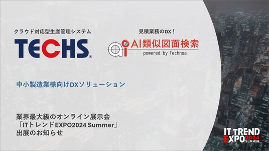 テクノアブースでは、「守りのDX」の代表格である、導入実績4,500社超の生産管理システム『TECHSシリーズ』をはじめとした生産管理ソリューション、AIを活用した業務プロセスの変革や新たなビジネスモデルを創出する「攻めのDX」を実現するソリューションをご案内いたします。