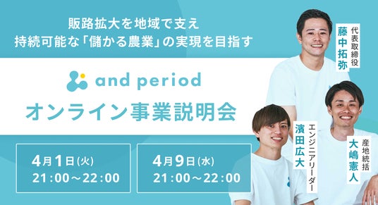 アンドピリオドはこうした農家の販路拡大の成功モデルを瀬戸内から全国に広げ、大手流通業者では取扱いの対象とならない希少な農産物の販路を開拓し、各地の農家が手掛けるこだわりの農作物や栽培技術を次世代につなぐことを目指しています。