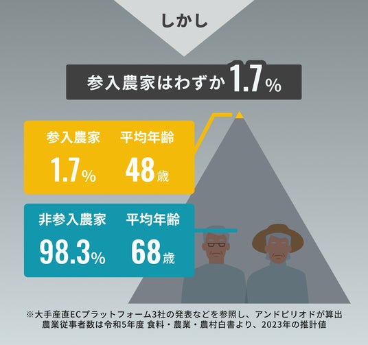 高齢な農家にとって、EC販売に取り組むには高い障壁があるのが現状です。藤中代表やアンドピリオドは、農家のEC販売をサポートする「産地コーディネーター」として活動してきました。