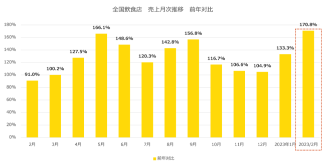 ・2月度の前年対比の売り上げ伸長率は、前月から37.5ポイント増加し前年対比で170.8%となった。