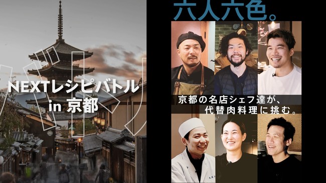 今回の京都でのNEXTレシピバトルでは、様々な分野から集ったプロの若手料理人6名が挑戦します。開催の舞台である京都は世界的にも注目される伝統的な食文化を有し、その食文化と未来の食材「代替肉」の融合は予想ができないものとなります。また気候変動に関する国際連合枠組条約の京都議定書が採択された地でもあり環境への意識も高いため、本取り組みにふさわしい場所と言っても過言ではありません。