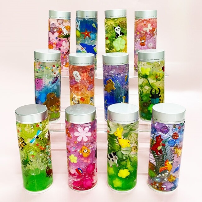 内容:7色カラー樹脂とお好みのモチーフを選びボトルに入れてカラフルボトルを作ります。