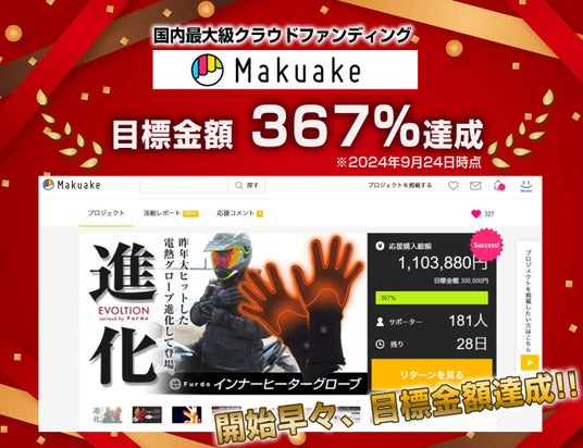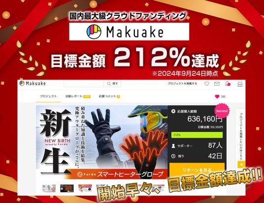 生活を豊かに、便利に、そして楽しくするアイテムの企画・開発・販売を手掛ける三金商事株式会社(本社:大分県大分市、代表取締役社長:田中 新一)は、2024年9月23日(月)より、クラウドファンディングサイトMakuakeにて『Furdo インナーヒーターグローブ』のプロジェクト開始後、わずか2時間で目標金額を達成いたしました。
