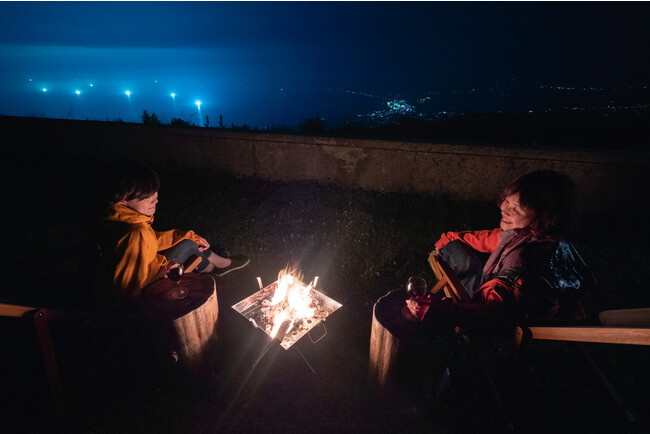 「佐渡の大自然を満喫。ビストロディナー焚火サロンプラン」「高原の澄んだ空気の中で薪の爆ぜる音をBGMにワインやおつまみを片手に幻想的な火の揺らめきと満点の星空、そして眼下に広がる夜景に心癒される特別なひとときを」リラックスツイン 2名1室29.000円~1泊料金(税込)