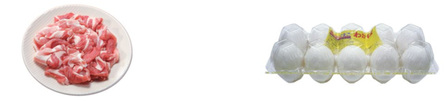 ・ 豚肉こま切れ(国産) (100g) 73円 ・ たまご わかば (1P 10個入り) 105円