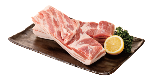 ・ 豚肉バラブロック(アメリカまたはカナダまたはチリ産)(100g) 105円