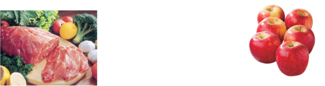 ・ 豚肉肩ロースブロック(100g) 105円 ・ ジャズりんご(ニュージーランド産)(1袋) 378円