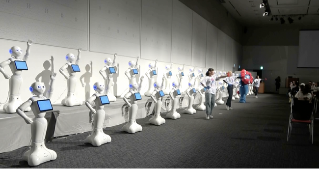 このたび配信されるロボアプリ「2025大阪・関西万博ダンス」は、2025年に開催される大阪・関西万博の機運の醸成を目的に開発され、気軽に口ずさめるメロディーや万博への期待感が高まる歌詞に合わせてPepperが楽しく踊ります。11月11日には、大阪市北区主催の「夢キタ万博2023」において総勢35体のPepperがダンスを初披露し、会場を盛り上げました。