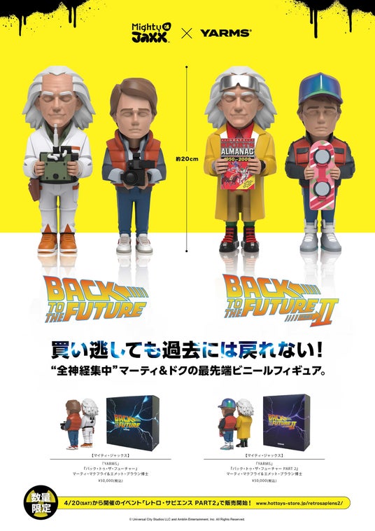 株式会社ホットトイズジャパンは、ホットトイズのフラッグシップ・ストア「トイサピエンス」で2024年4月20日(土)~7月7日(日)に開催する入場無料のイベント「レトロ・サピエンス PART2」にて、マイティ・ジャックスが展開する「YARMS」と『バック・トゥ・ザ・フューチャー』がコラボレーションしたビニールフィギュアを数量限定で販売いたします。