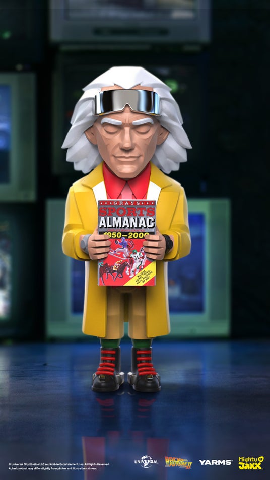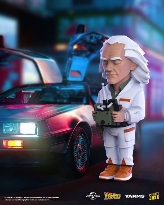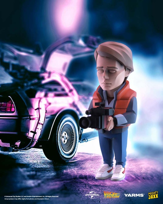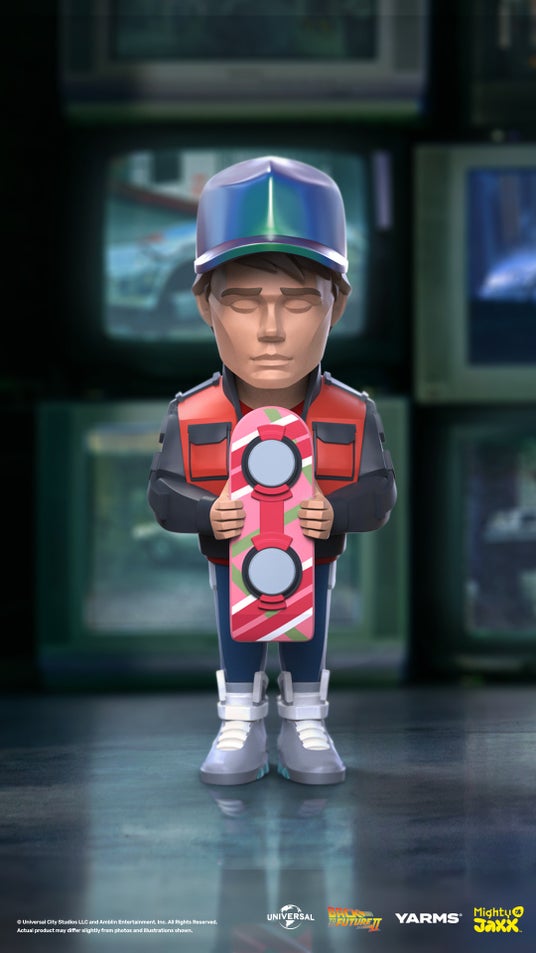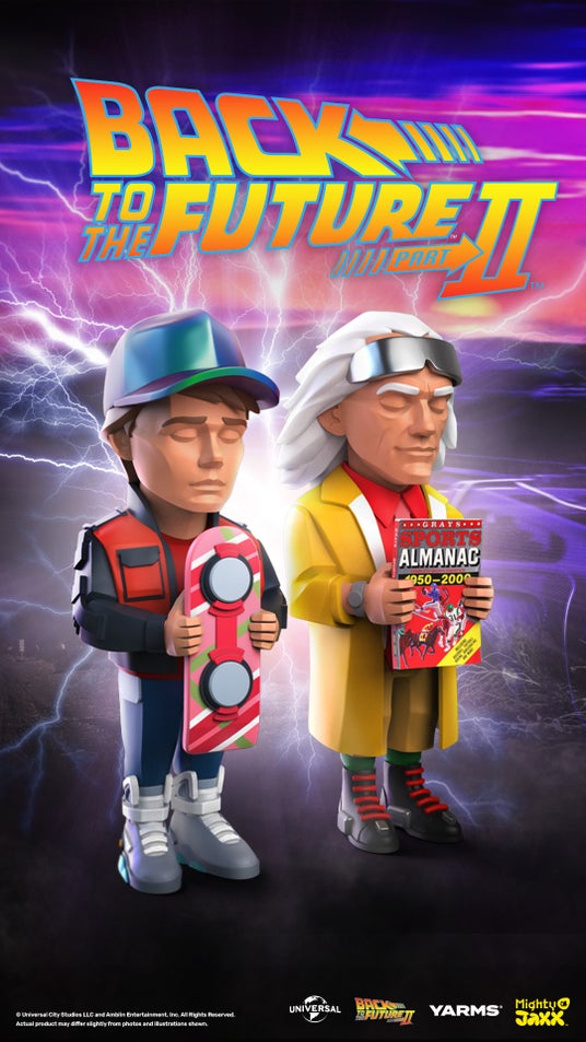 「YARMS」は、デジタルスカルプティングを用いた先進的なデザインで注目を浴びるトイ・デザイナーのダニール・ヤッドが創立したクリエイティブスタジオです。各方面の著名人物やポップカルチャーのアイコンを独特のフォルムで立体化し、近年世界中で人気を得ています。『バック・トゥ・ザ・フューチャー』とコラボレーションした本アイテムは、『バック・トゥ・ザ・フューチャー』1作目と2作目のマーティ・マクフライとエメット・ブラウン博士(ドク)を、それぞれ高さ約20cmのビニールフィギュアとして立体化。