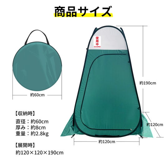 トイレや着替えなど、周囲の目が気になる所用はこのテントで解決!ユーザー目線に立った多機能設計で、安心して使用できるテントです。ご案内の最後に、組立&収納方法をリンク先動画で解説!