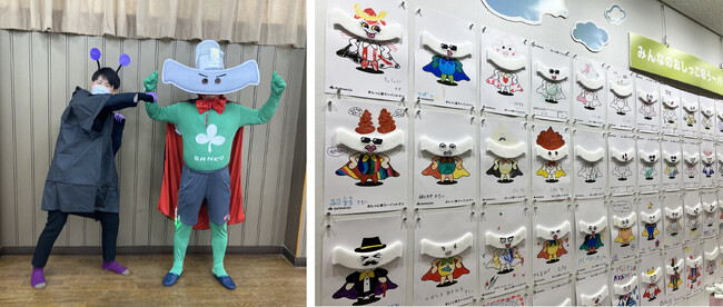 サンコーのトイレ商品人気NO.1の「おしっこ吸う~パット」がキャラクターとなり、和歌山市の幼稚園でトイレについて学ぶクイズを行いました。その他、海南市の図書館にてワークショップを実施しました。