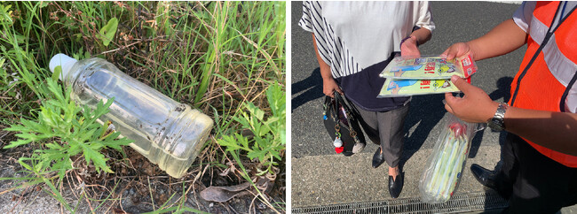 高速道路付近で、一部のドライバーがトイレに行くのが面倒である・渋滞などを理由にペットボトルに尿を排泄し、道路脇にポイ捨てされている状況が近年問題となっています。そこでサンコーの「緊急ミニトイレ」を和歌山県トラック協会様に寄付したり、SAで一般配布する活動を行いました。