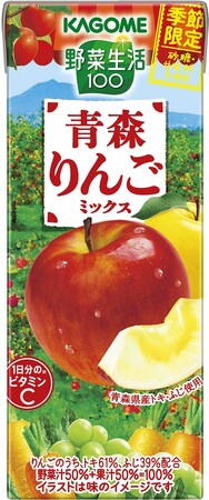 ※ 青森県産りんごを使用した季節限定『野菜生活100』が10周年です。年によって「つがるりんごミックス」等商品名が異なる時もあります。