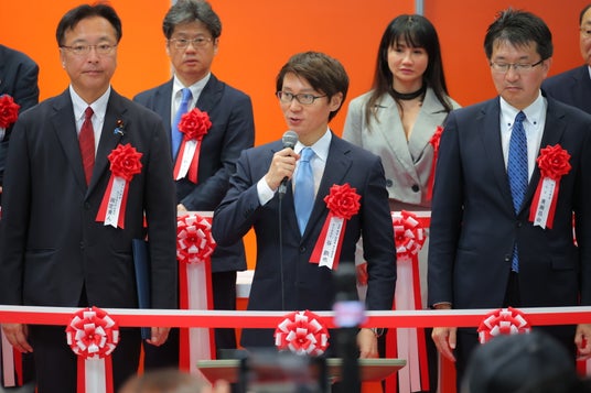 オープニングセレモニーでスピーチを行う谷 鉃也 実行委員長(中央)