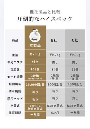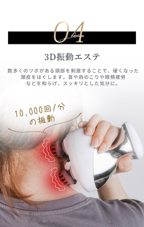 エステサロンや美顔器でもよく使われている赤光エステは髪の根元に強くする。LEDの光が毛乳頭細胞に届くと、細胞から特殊なシグナルが発信されるメカニズムのためです。毎日10分位ほど使えると、毛髪のボリュウーム感UPを実現できます。10分後にマッサージ作動は自動に停止となります。使用すぎを防止します。