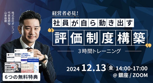 株式会社オレコン(本社:東京都港区、代表取締役:山本琢磨)は2024年12月13日開催:評価制度構築3時間トレーニングの申し込み受付を開始しました。
