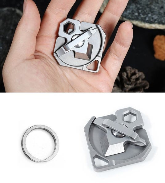 『回転して「カッター・ドライバー・スパナ」として使える【チタン合金マルチツール】』