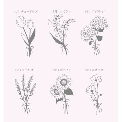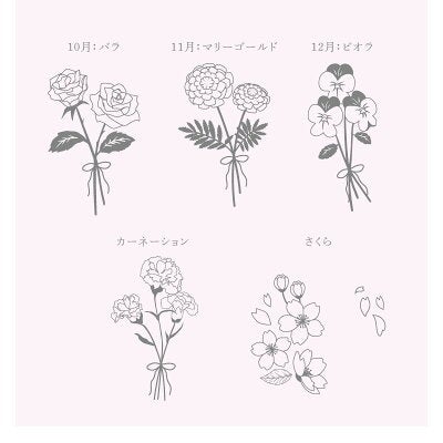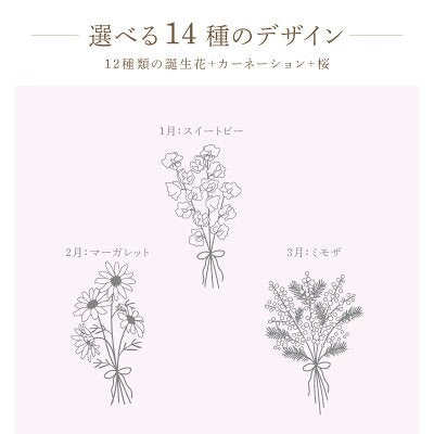 マグカップには、1月から12月の誕生花に加え、「さくら」「カーネーション」を含めた