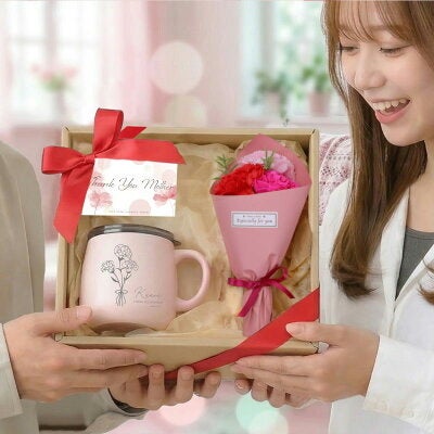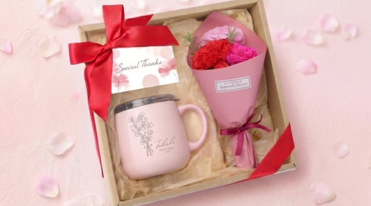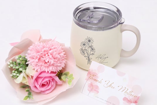枯れないソープフラワーと真空断熱マグをセットにした、“使える×飾れる”新しいフラワーギフト