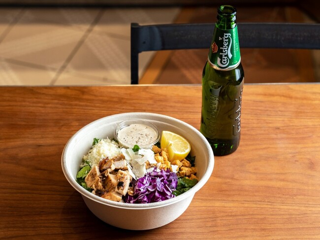 ザクザク食感と2種類の濃厚なチーズが楽しめるお酒にピッタリなサラダはニュウマン横浜の限定メニュー。爽快感のあるビール カールスバーグと一緒にお召し上がりください。