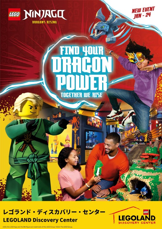 レゴランド(R)・ディスカバリー・センター東京・大阪(運営:マーリン・エンターテインメンツ・ジャパン)は、2024年1月27日(土)から3月3日(日)まで『レゴ(R)ニンジャゴーイベント~キミのドラゴンパワーをみつけよう!~』を開催します。毎年人気の「レゴ(R)ニンジャゴー」をテーマにしたイベントが今年は、ドラゴンライジングの新世代ヒーローたちをフィーチャーしたエキサイティングなコンテンツをお届けします。NEWコンテンツには、ニンジャゴーヒーローたちをドラゴンに乗せて、遠くまでかっこよくとばす『ライジング・ドラゴンチャレンジ』が登場。参加すると新世代ヒーローのおめんがもらえます。また、東京や大阪の名所をレゴ(R)ブロックで再現したジオラマ「ミニランド」では、6体のニンジャゴーミニフィギュアを見つけて、その近くにあるアルファベットから合言葉を見出す『ミニフィグハント』。そして、レゴのワークショップでは『りゅう』(東京)や『ニンジャ』(大阪)のレゴビルドを体験できます。『ドラゴン・ウィングス・フォト』ではドラゴンの羽と一緒に迫力ある写真が撮影可能。ここで撮った写真を指定のハッシュタグを付けてインスタグラムに投稿すると、抽選でレゴ(R)商品をプレゼントします。さらに本イベント期間中、ニンジャゴーになりきって、ニンジャの仮装をしてきてくれたお子様にショップでのディスカウントチケットをお渡しする、楽しいキャンペーンも実施します。その他、レゴ(R)ニンジャゴー商品にニンジャゴーミニフィギュアが付いた、限定イベントキットも公式ホームページにて販売します。ニンジャゴーの世界に入り込んで、ヒーローになりきれる期間限定のイベントへ是非ご家族でお越しください。